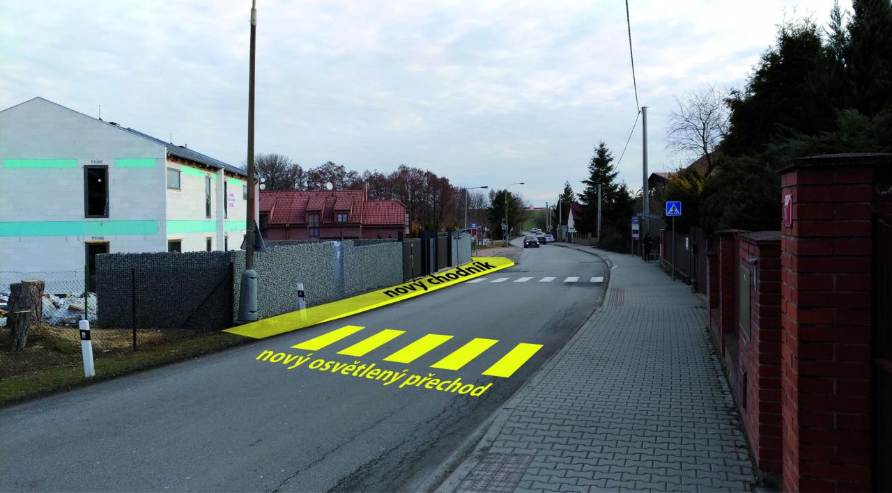 Obsahem projektu je odkup soukromých pozemků, vybudování chodníku a nového osvětleného přechodu na vhodném místě.