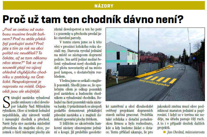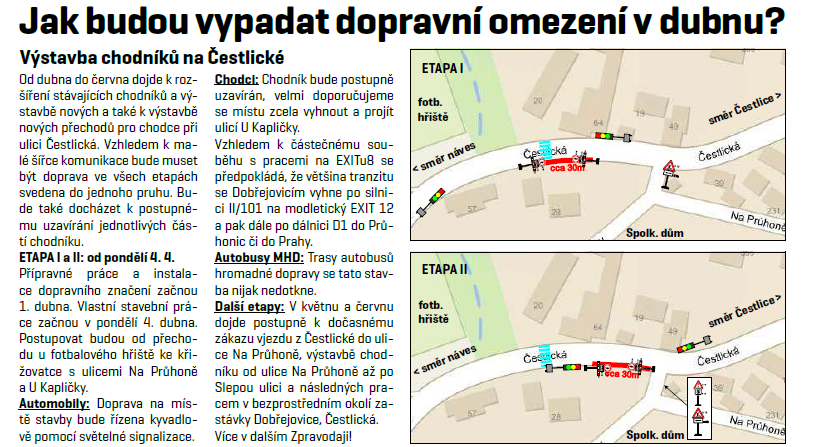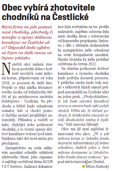 Investiční akce „Rozšíření chodníku v ulici Čestlické a oprava dešťové kanalizace“