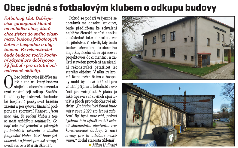 Dobřejovický Zpravodaj 2022_04_Bývalá ubytovna a hospoda slouží uprchlíkům