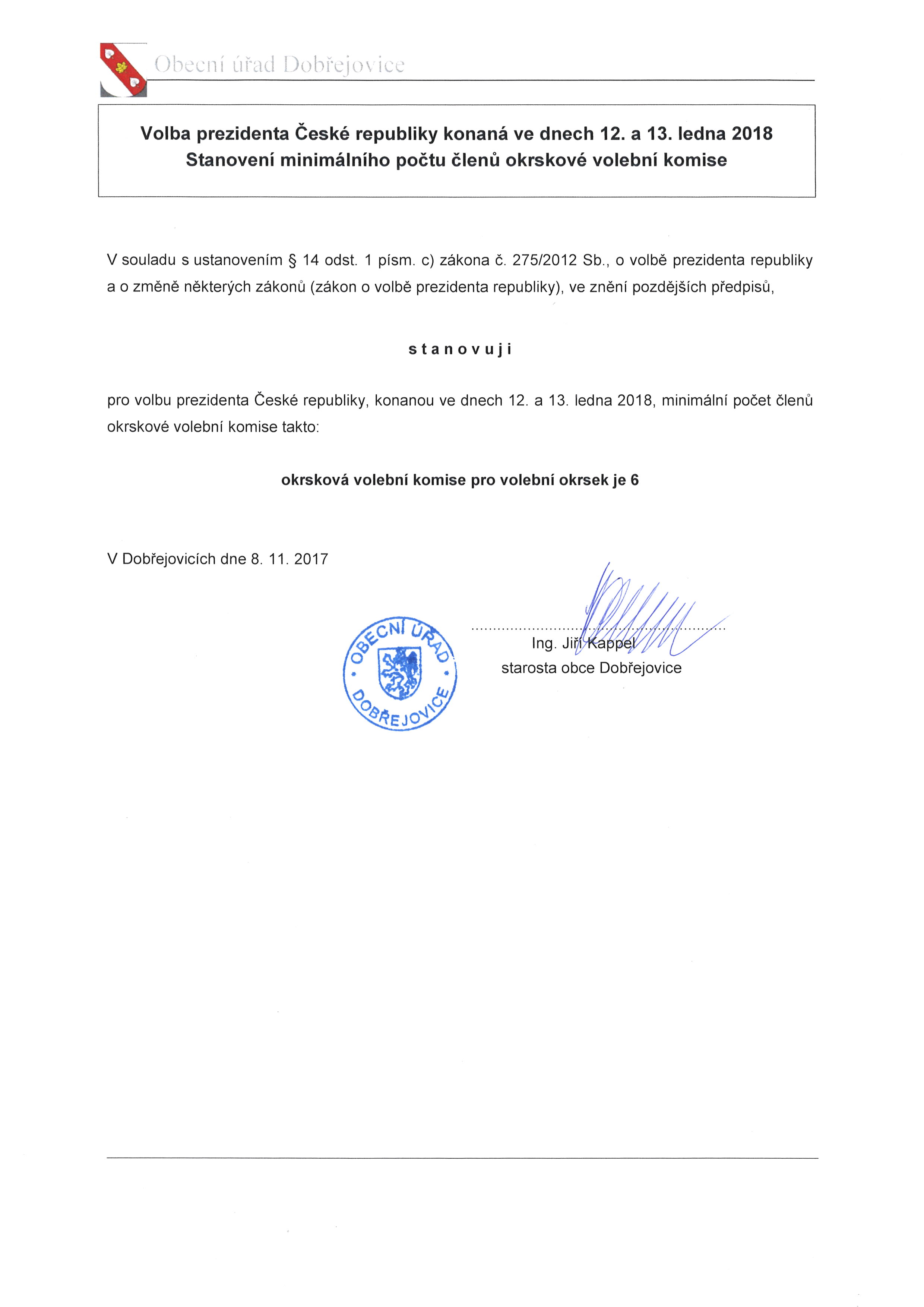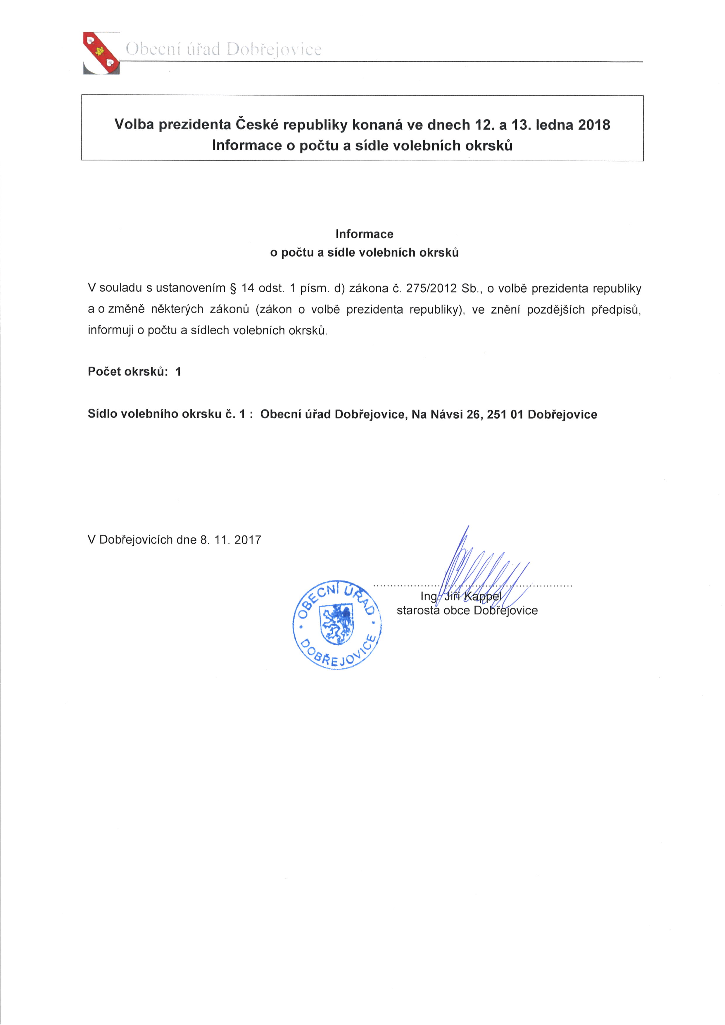 Informace o počtu a sídle volebních okrsků