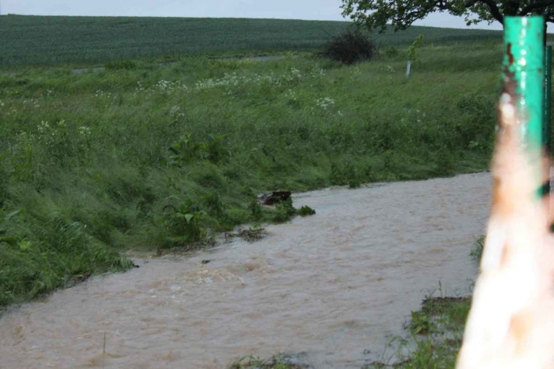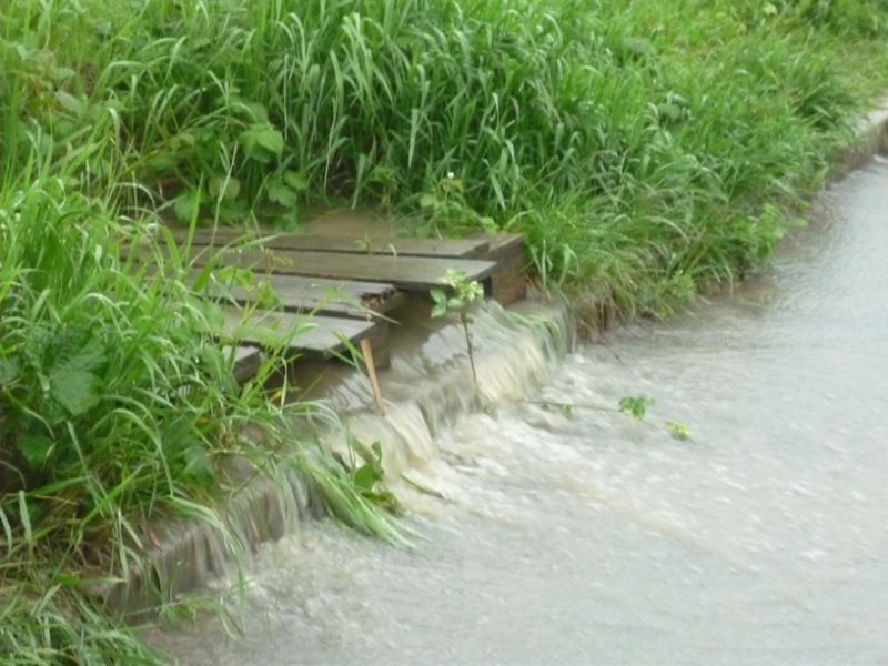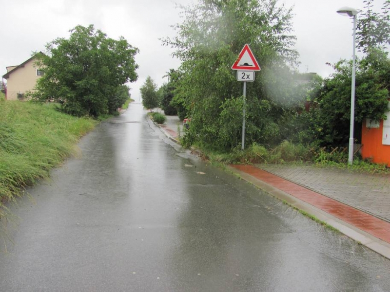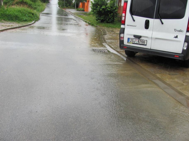 V Čestlické ulici proběhlo větší množství vody, prakticky na hranici průtočnosti trubky pod silnicí také počátkem června.